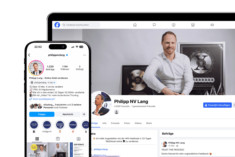 Ich bin Philipp Lang und ich konnte in den letzten 6 Jahren tausenden Menschen helfen, sich ein erfolgreiches Online-Business aufzubauen und damit monatlich 10k+ nebenberuflich oder hauptberuflich zu verdienen.