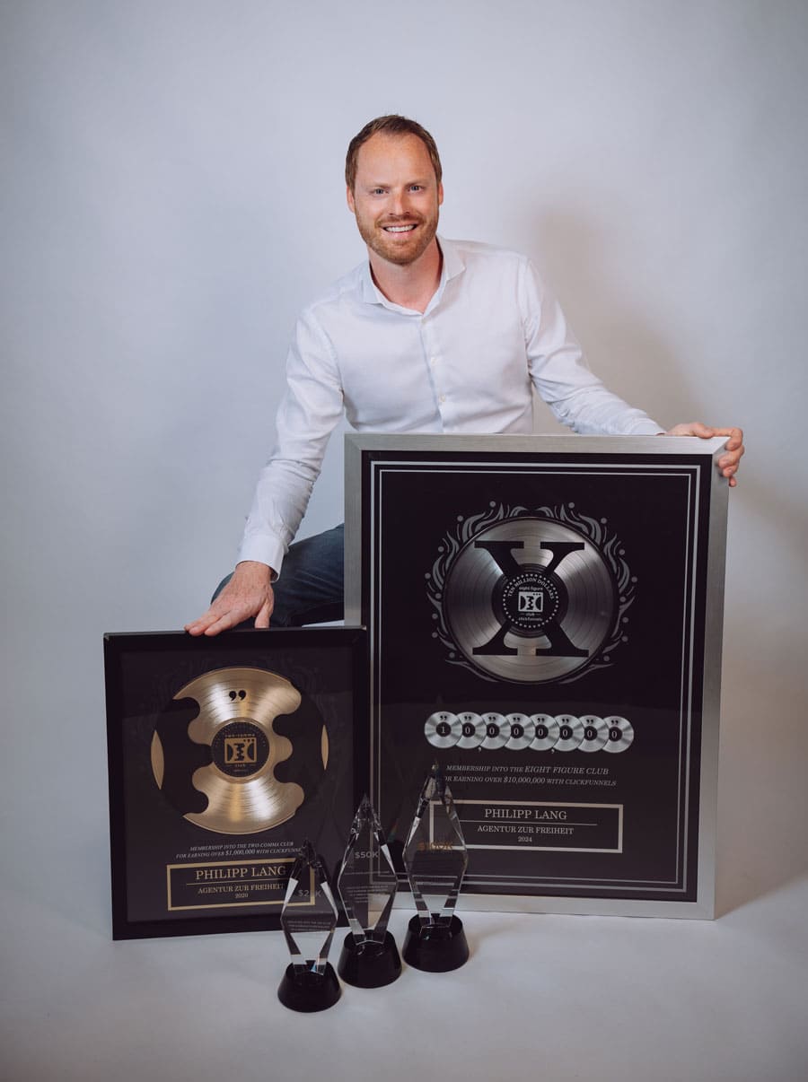 Mit einem engagierten 35-köpfigen Team und einem Jahresumsatz von über 10 Millionen Euro wurde Philipp Lang im Februar 2024 mit dem renommierten Two Comma „X“ Award von ClickFunnels ausgezeichnet.