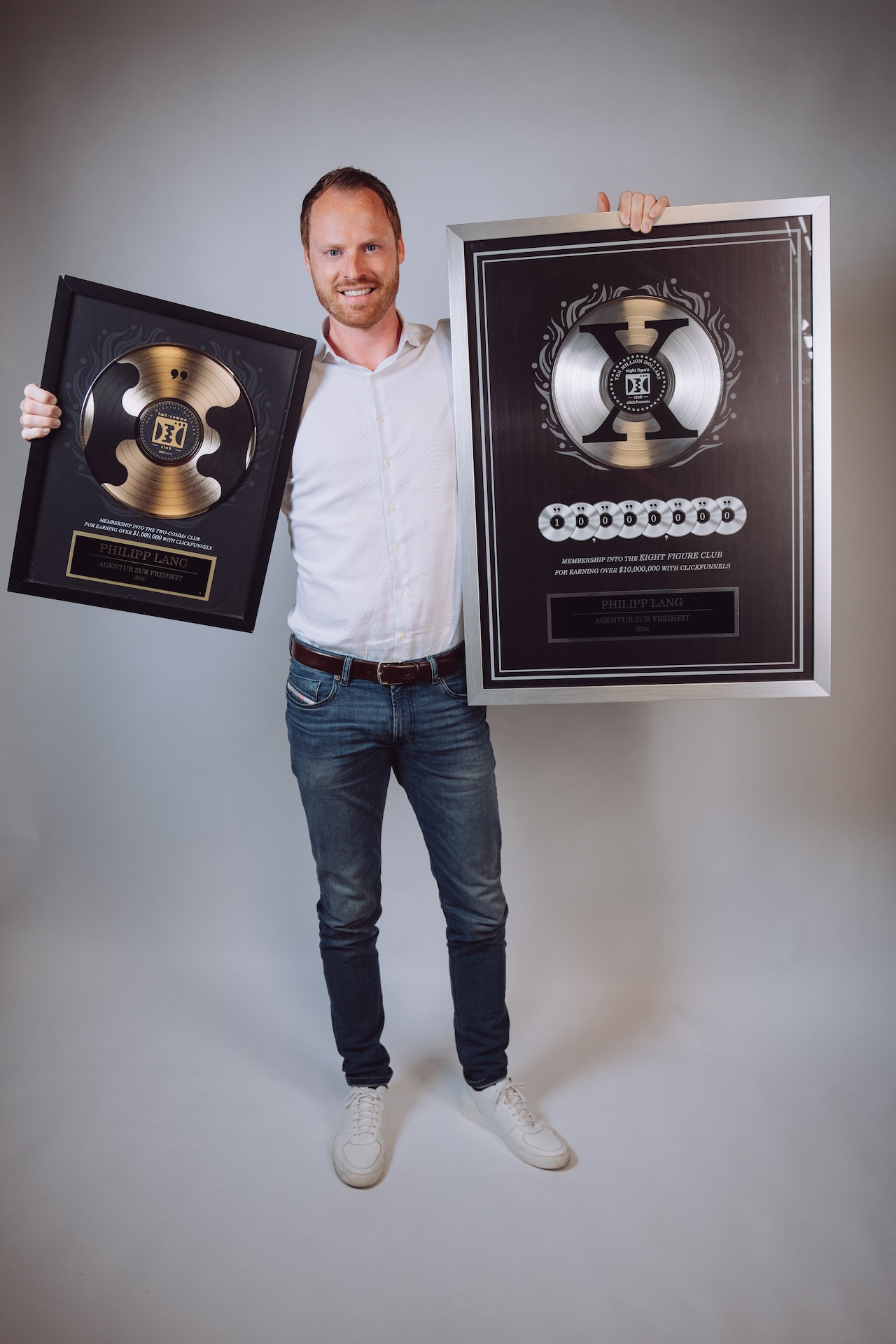 Im Februar 2024 wurden wir mit dem renommierten „Two Comma Club ‚X’ Award” von ClickFunnels ausgezeichnet. Dieser Preis, wird an Menschen vergeben, die beweisen können, über 10 Millionen aufs Konto überwiesen bekommen zu haben. Allein in 2024 machten wir 8-stelligen Umsatz.